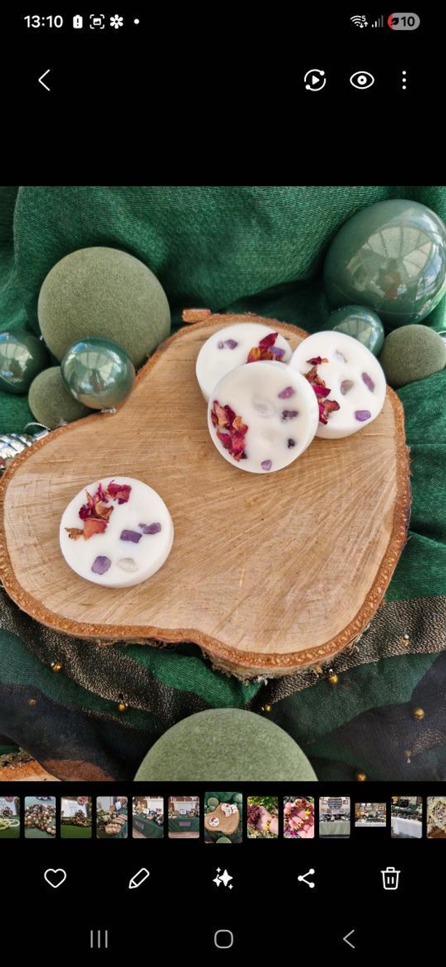 Crystals and botanicals are chosen at random.and your melt may vary slightly from picture shown .